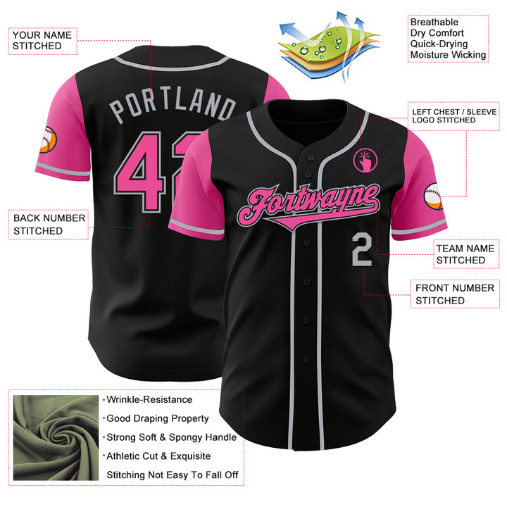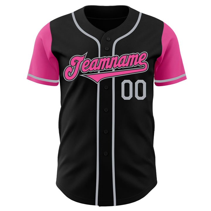 Custom Black Pink-Gray Authentic Two Tone Baseball Jersey