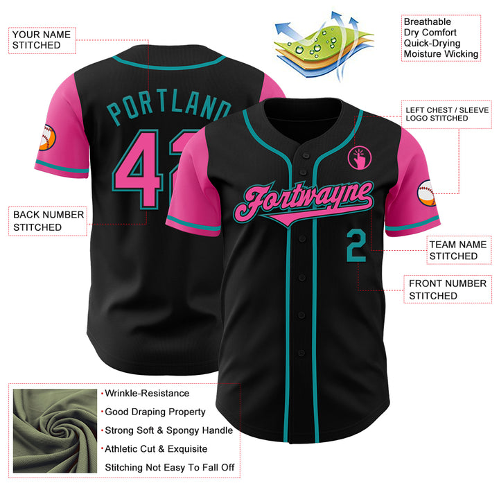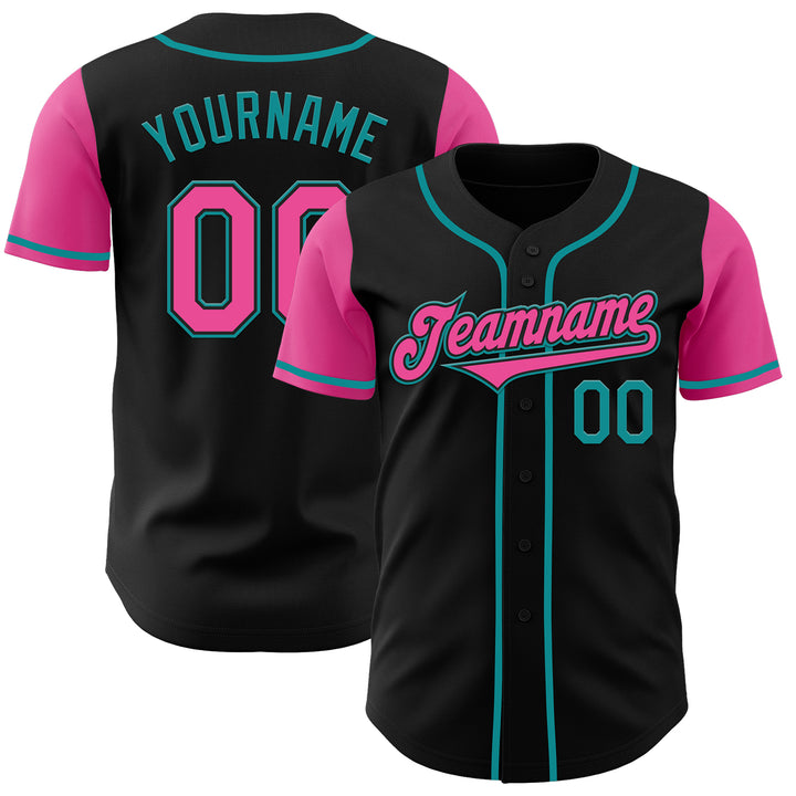 Custom Black Pink-Teal Authentic Two Tone Baseball Jersey