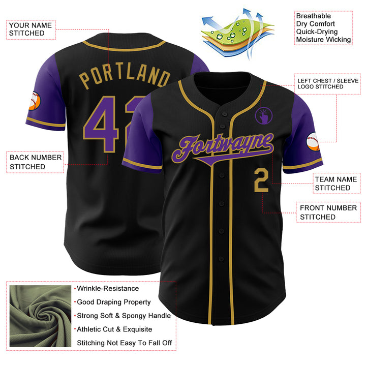 Custom Black Purple-Old Gold Authentic Two Tone Baseball Jersey