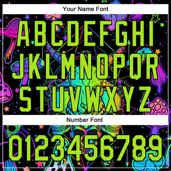 Custom Black Neon Green 3D Pattern Design Trippy Magic Mushrooms Goat Skull Authentic Baseball Jersey