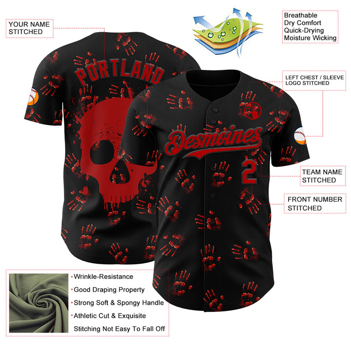 Custom Black Red 3D Halloween Skull Horror Night Trick Treat Party Costume Ideas Authentic Baseball Jersey