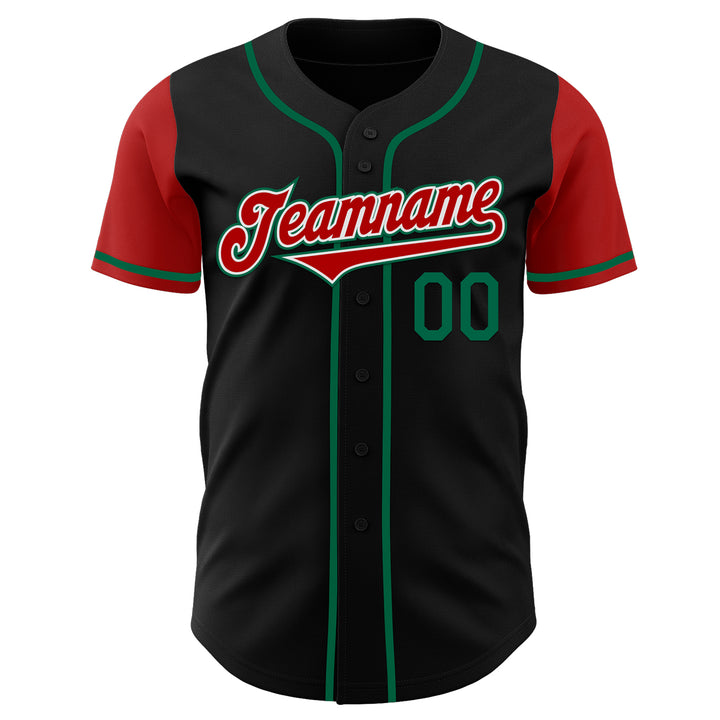 Custom Black Red-Kelly Green Authentic Two Tone Baseball Jersey
