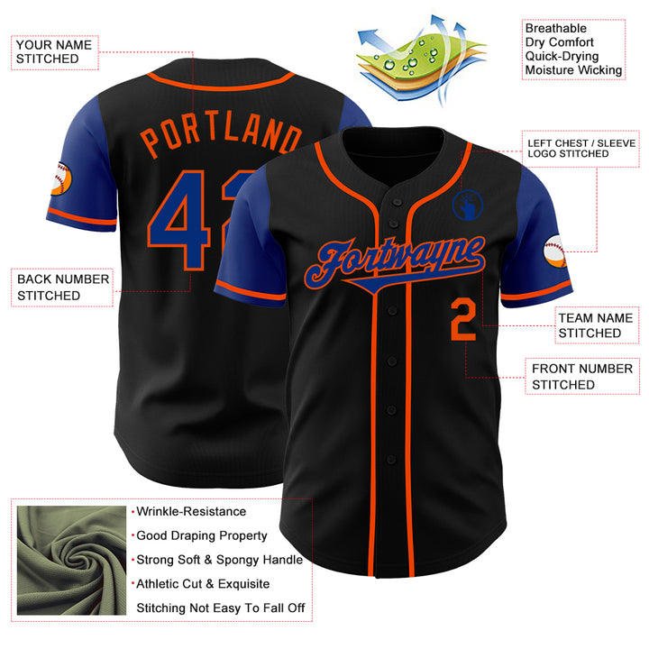 Custom Black Royal-Orange Authentic Two Tone Baseball Jersey