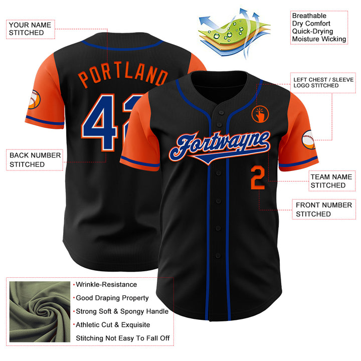 Custom Black Royal-Orange Authentic Two Tone Baseball Jersey