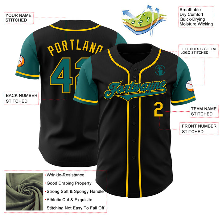 Custom Black Teal-Yellow Authentic Two Tone Baseball Jersey