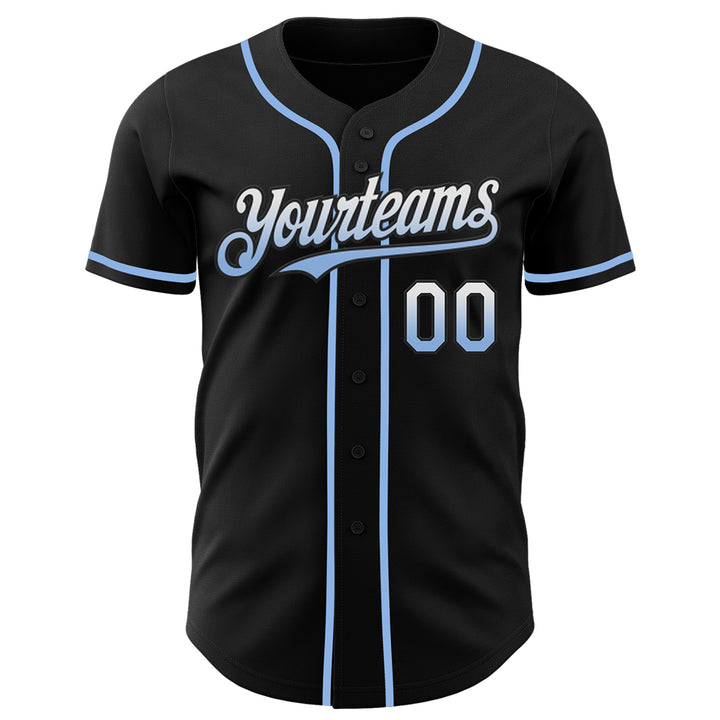 Custom Black White-Light Blue Authentic Fade Fashion Baseball Jersey