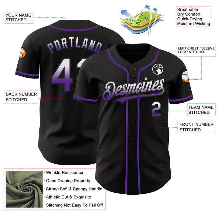 Custom Black White-Purple Authentic Fade Fashion Baseball Jersey