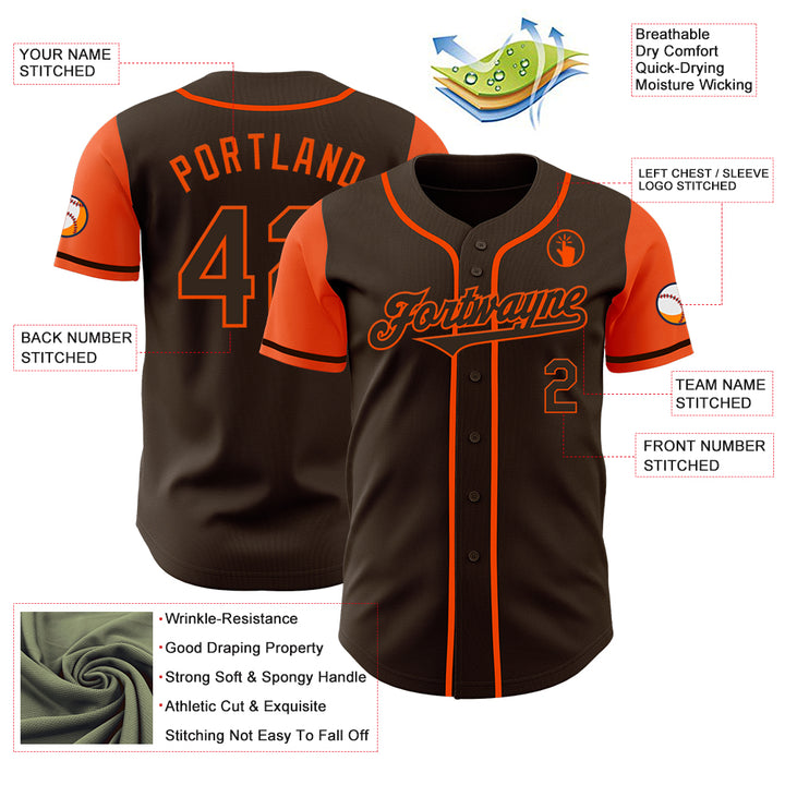 Custom Brown Orange Authentic Two Tone Baseball Jersey