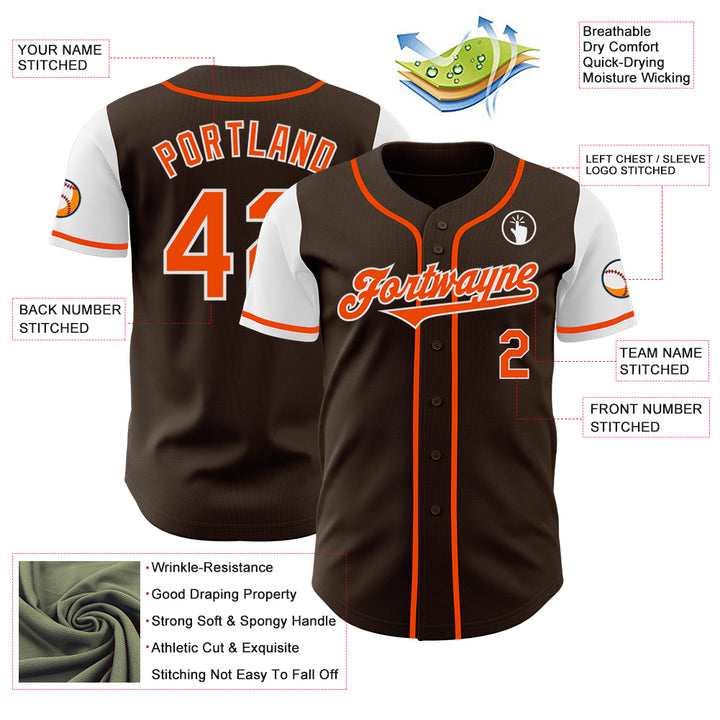 Custom Brown Orange-White Authentic Two Tone Baseball Jersey