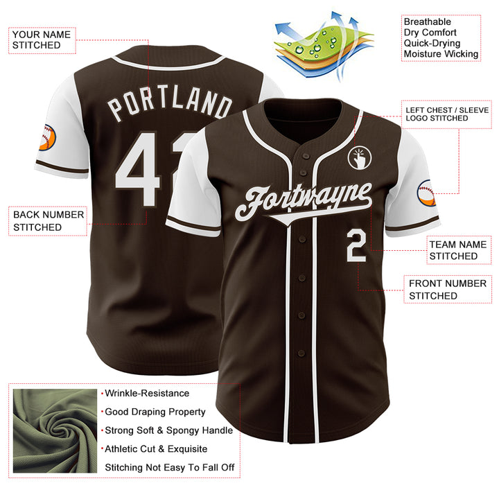 Custom Brown White Authentic Two Tone Baseball Jersey