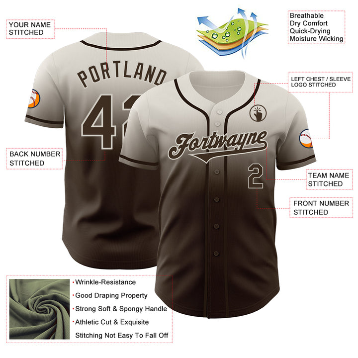 Custom Cream Brown Authentic Fade Fashion Baseball Jersey