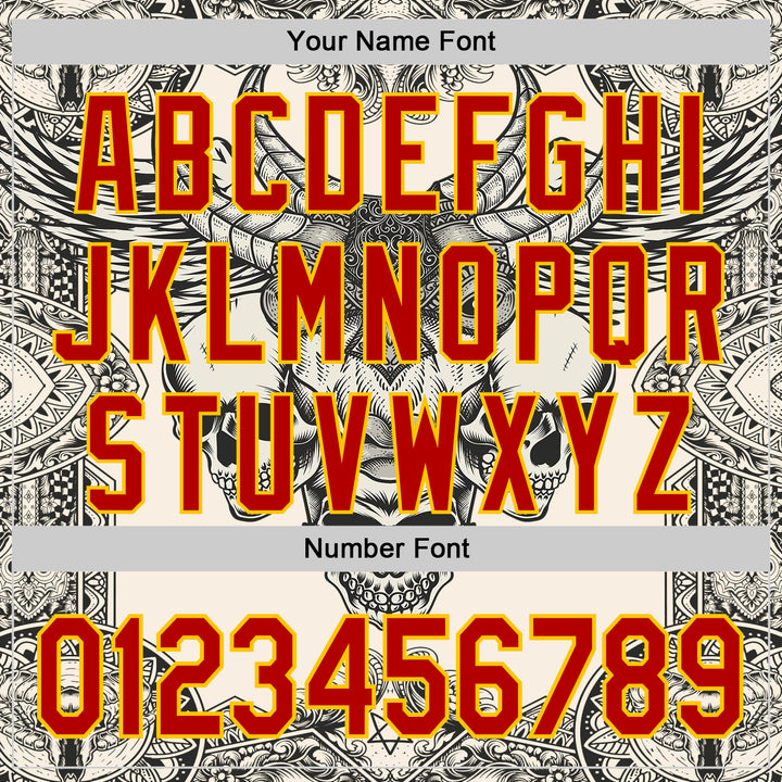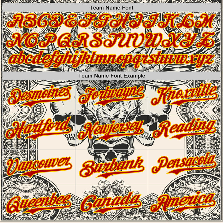 Custom Cream Red-Yellow 3D Pattern Design Burner Costumes Hell Skull Authentic Baseball Jersey