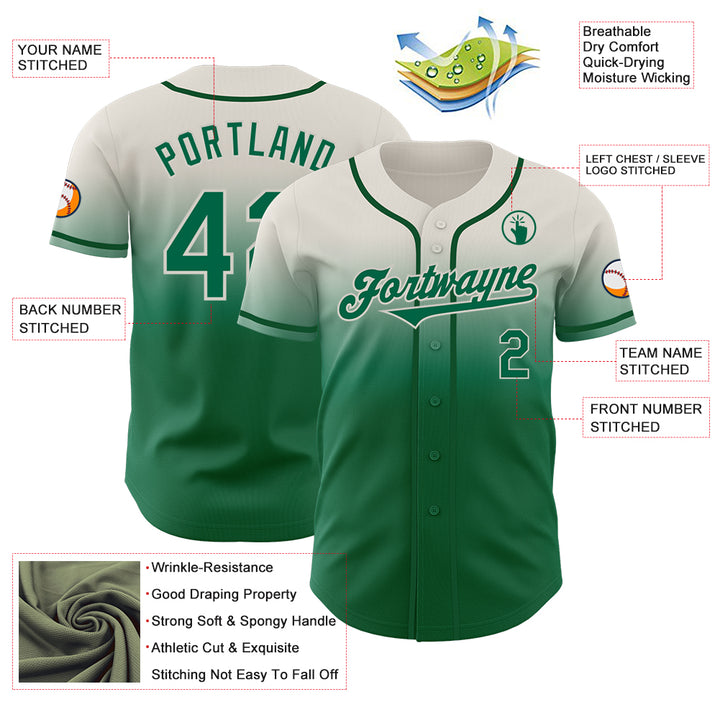 Custom Cream Kelly Green Authentic Fade Fashion Baseball Jersey