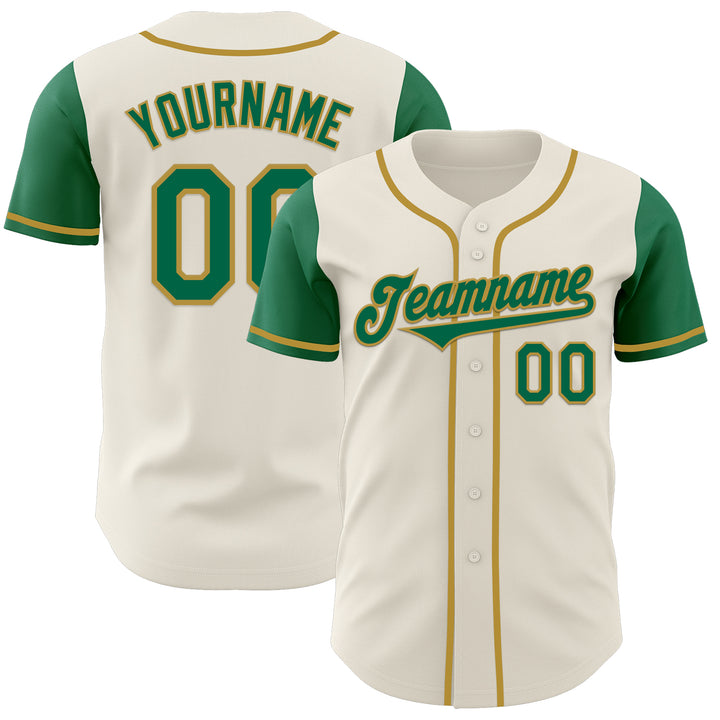 Custom Cream Kelly Green-Old Gold Authentic Two Tone Baseball Jersey