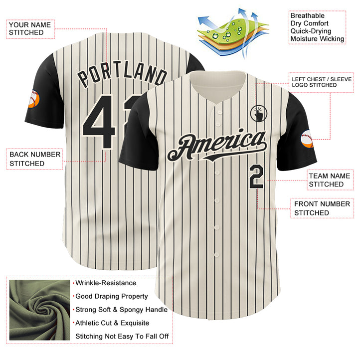 Custom Cream Black Pinstripe Black Authentic Two Tone Baseball Jersey