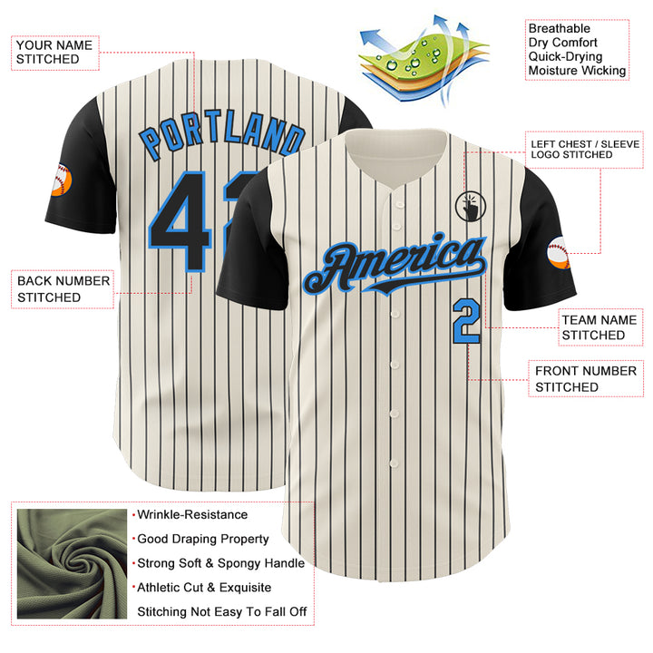 Custom Cream Black Pinstripe Electric Blue Authentic Two Tone Baseball Jersey