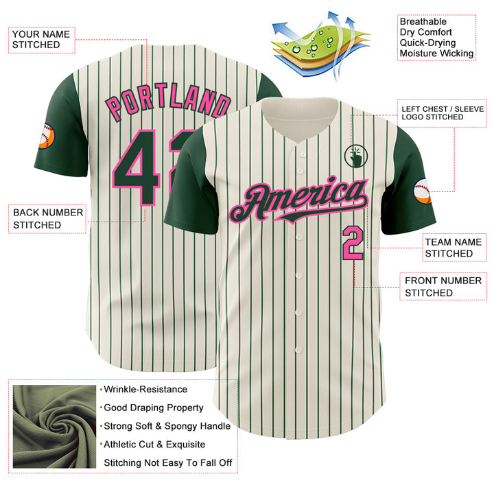Custom Cream Green Pinstripe Pink Authentic Two Tone Baseball Jersey