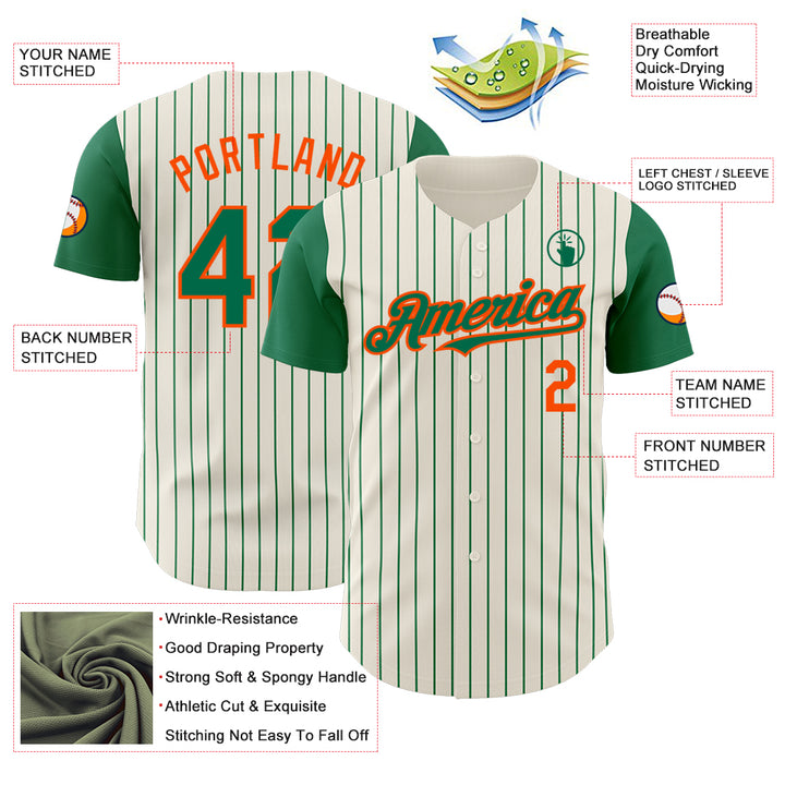 Custom Cream Kelly Green Pinstripe Orange Authentic Two Tone Baseball Jersey