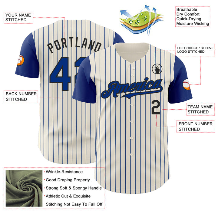 Custom Cream Royal Pinstripe Black Authentic Two Tone Baseball Jersey
