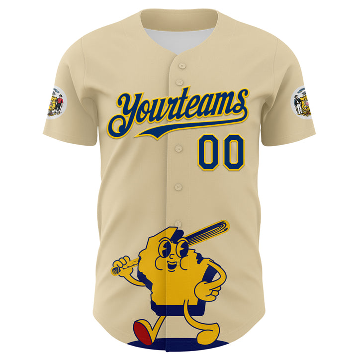 Custom Cream US Navy Blue Yellow-Red 3D Urban City Edition Sports Authentic Baseball Jersey