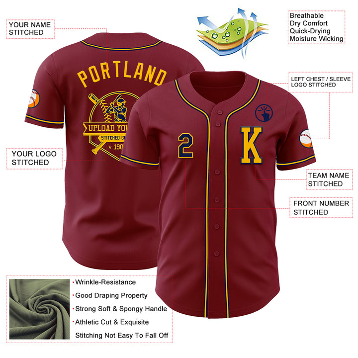 Custom Crimson Navy-Gold Authentic Baseball Jersey