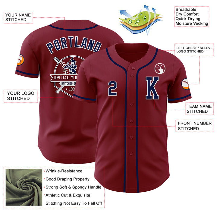 Custom Crimson Navy-White Authentic Baseball Jersey