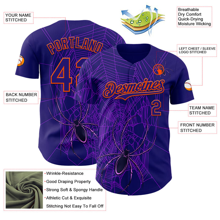 Custom Dark Purple Orange 3D Halloween Spider Net Party Costume Ideas Authentic Baseball Jersey