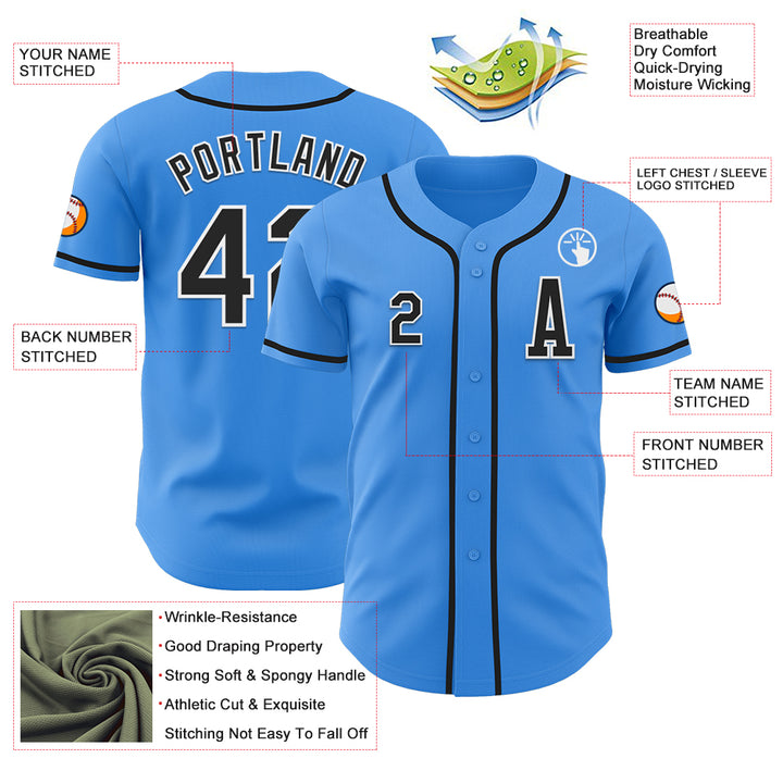 Custom Electric Blue Black-White Authentic Baseball Jersey
