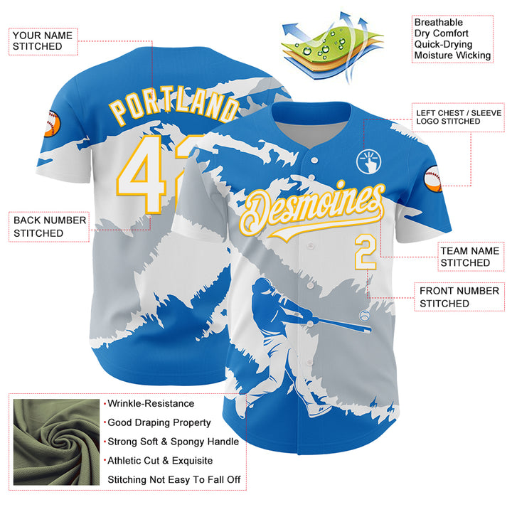 Custom Electric Blue Gold-Silver 3D Nicaragua Nicaraguan Flag Authentic Baseball Jersey