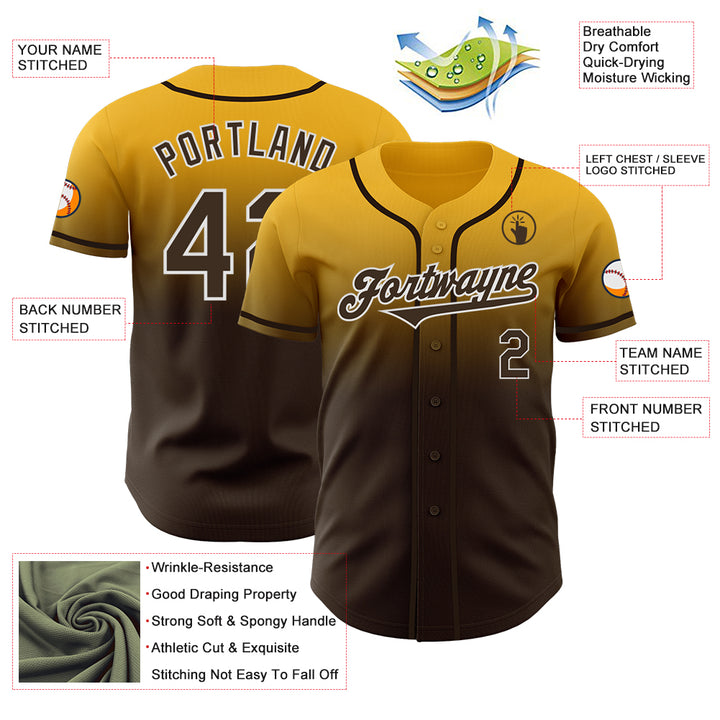 Custom Gold Brown-White Authentic Fade Fashion Baseball Jersey