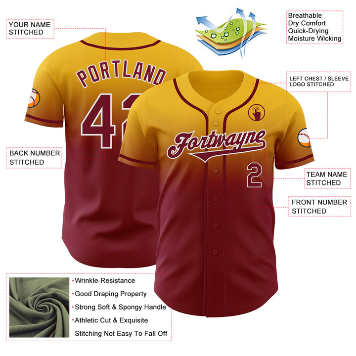 Custom Gold Crimson-White Authentic Fade Fashion Baseball Jersey