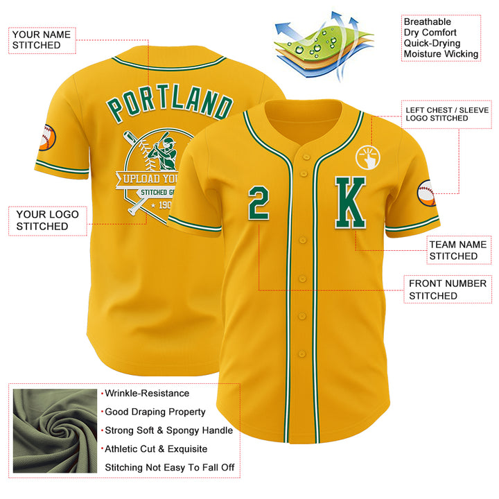 Custom Gold Kelly Green-White Authentic Baseball Jersey