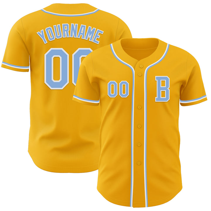 Custom Gold Light Blue-White Authentic Baseball Jersey