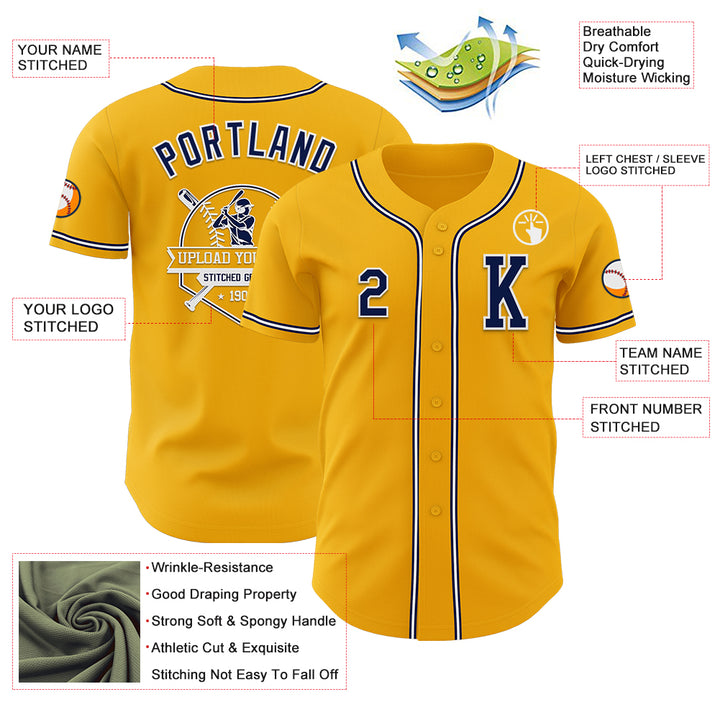 Custom Gold Navy-White Authentic Baseball Jersey