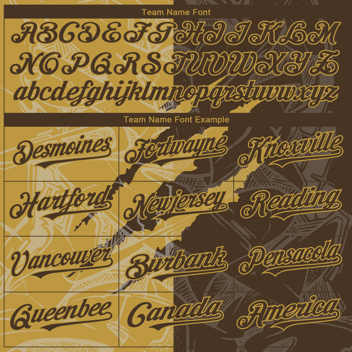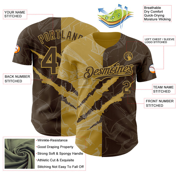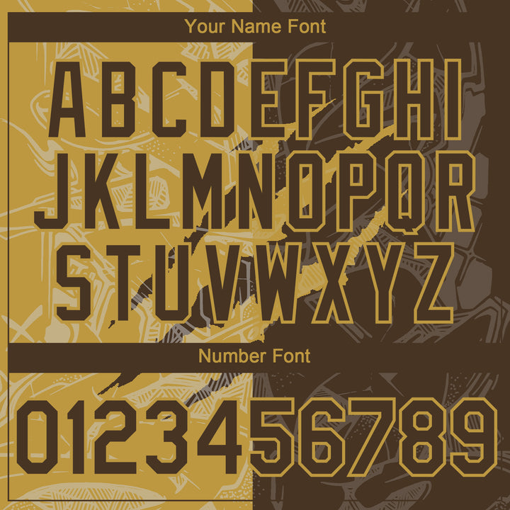 Custom Graffiti Pattern Brown-Old Gold 3D Scratch Authentic Baseball Jersey