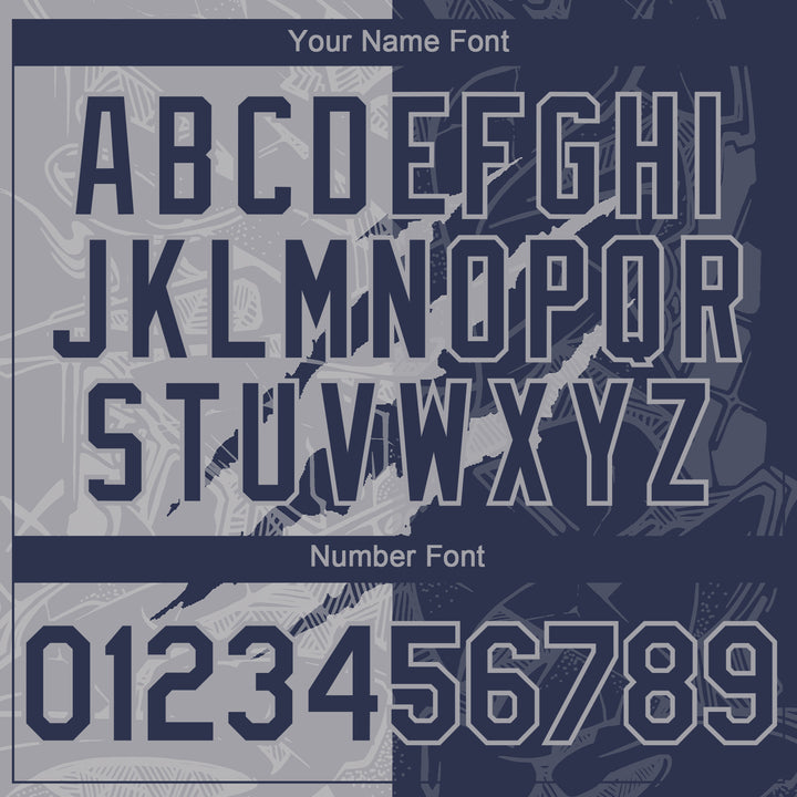 Custom Graffiti Pattern Navy-Gray 3D Scratch Authentic Baseball Jersey