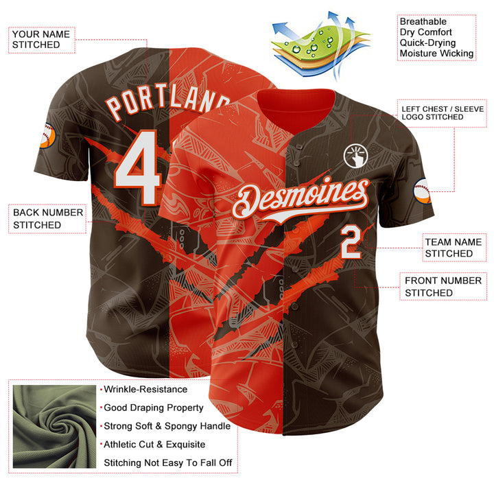 Custom Graffiti Pattern White Brown-Orange 3D Scratch Authentic Baseball Jersey
