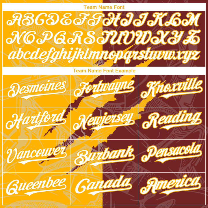 Custom Graffiti Pattern White Burgundy-Gold 3D Scratch Authentic Baseball Jersey