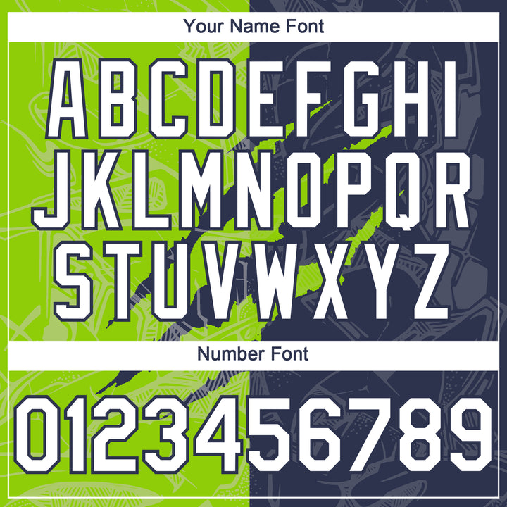 Custom Graffiti Pattern White Navy-Neon Green 3D Scratch Authentic Baseball Jersey