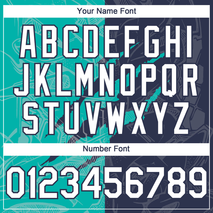 Custom Graffiti Pattern White Navy-Aqua 3D Scratch Authentic Baseball Jersey