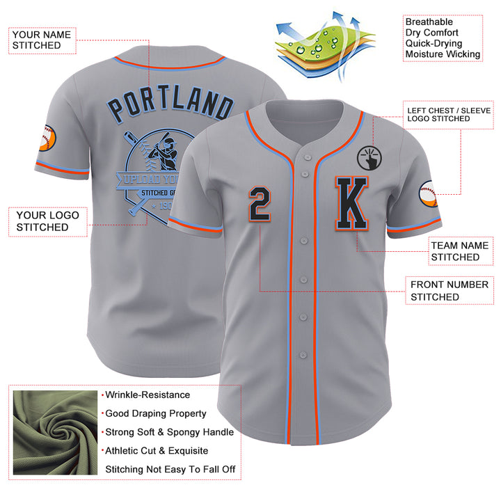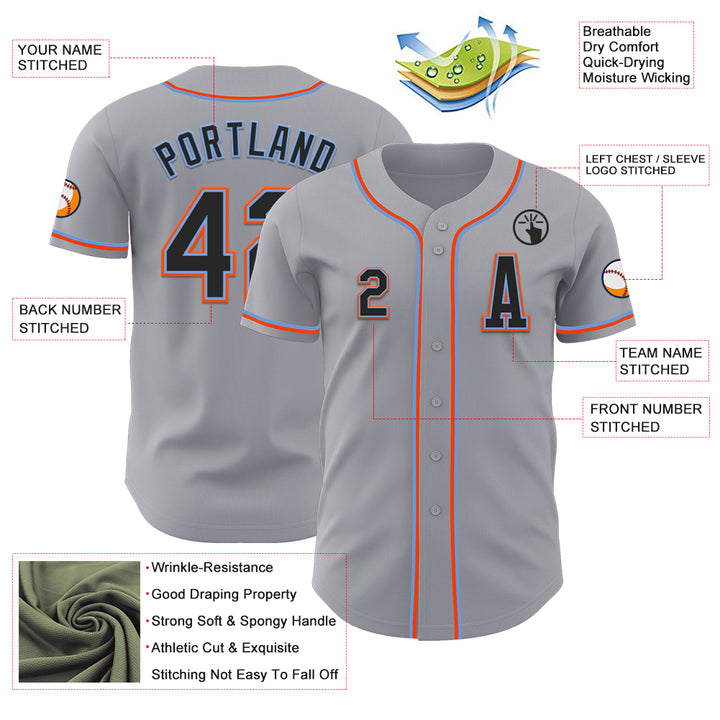 Custom Gray Black Powder Blue-Orange Authentic Baseball Jersey