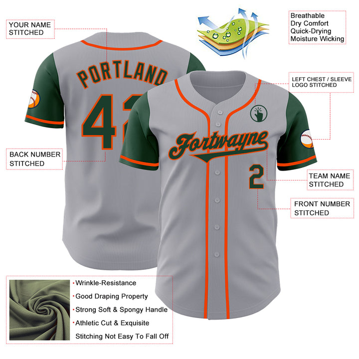 Custom Gray Green-Orange Authentic Two Tone Baseball Jersey