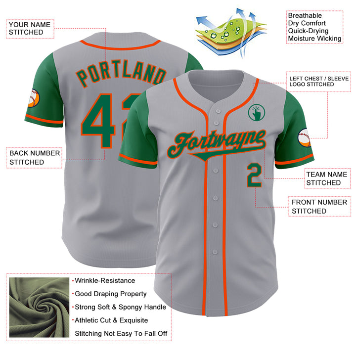 Custom Gray Kelly Green-Orange Authentic Two Tone Baseball Jersey