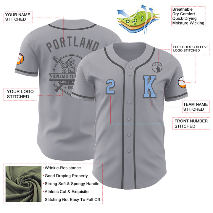 Custom Gray Light Blue-Steel Gray Authentic Baseball Jersey