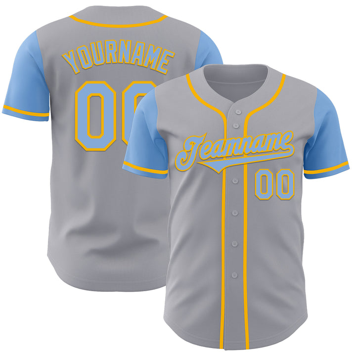 Custom Gray Light Blue-Gold Authentic Two Tone Baseball Jersey