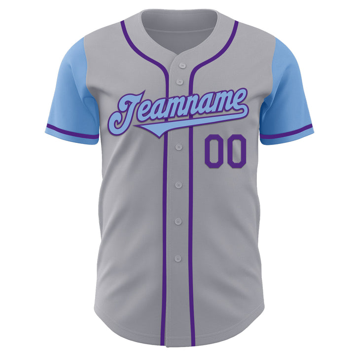 Custom Gray Light Blue-Purple Authentic Two Tone Baseball Jersey