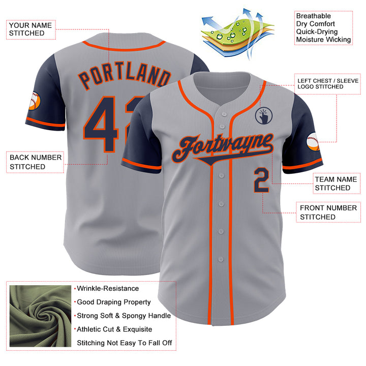 Custom Gray Navy-Orange Authentic Two Tone Baseball Jersey