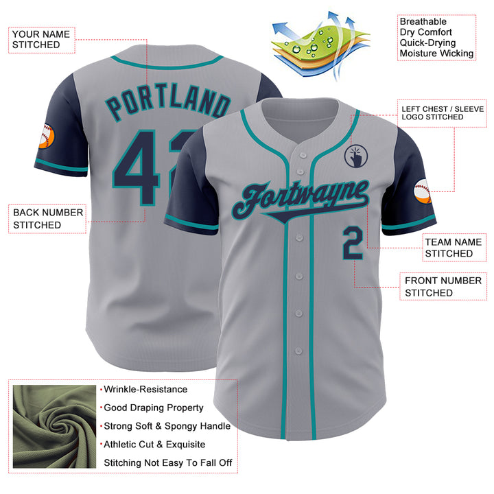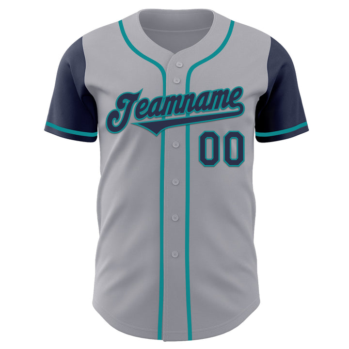 Custom Gray Navy-Teal Authentic Two Tone Baseball Jersey