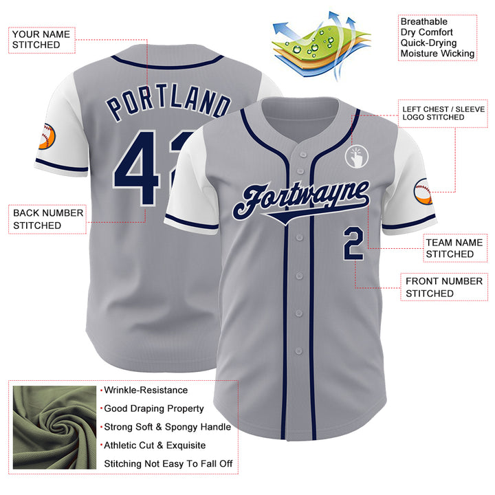 Custom Gray Navy-White Authentic Two Tone Baseball Jersey