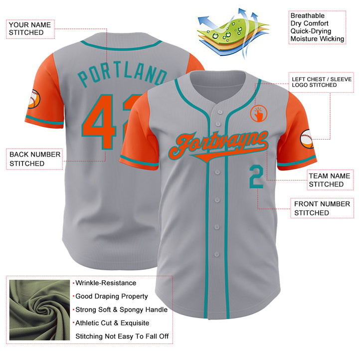 Custom Gray Orange-Teal Authentic Two Tone Baseball Jersey